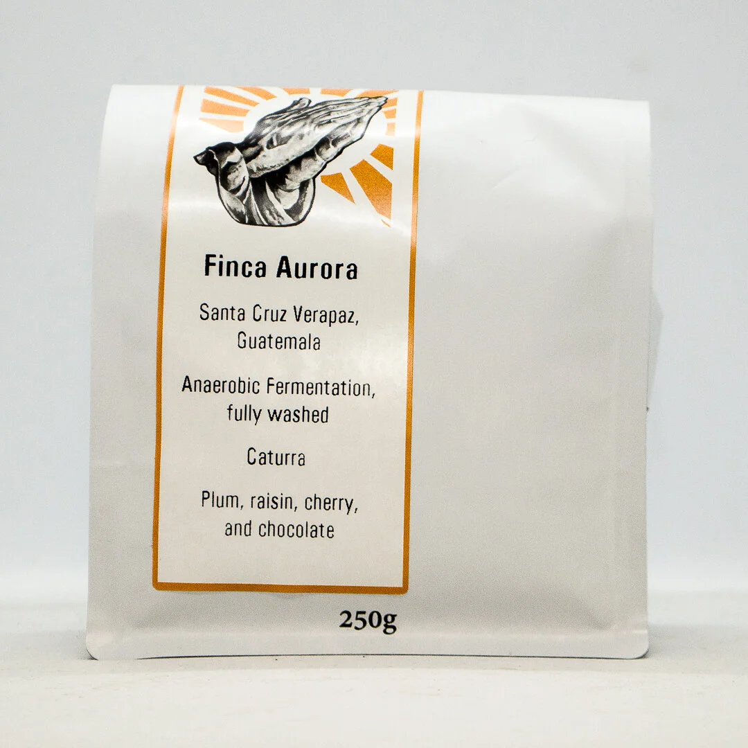 Finca Aurora is surrounded by natural forests, rivers and lakes giving the farm excellent natural sources of nitrogen rich water. The ripe cherries are picked and fermented anaerobically, without the use of air. Removing the oxygen initiates a unique fermentation which lends exotic aromas as well as red fruit and winey flavours to the bean.